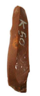| Description / विवरण | Flake with thick medial ridge and sharp sides, snapped both distal and pointed ends broken. |