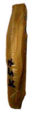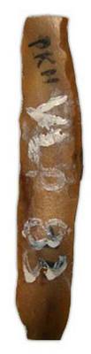 | Description / विवरण | Parallel sided blade made on thin flake with thick medial portion and sharp lateral sides, flake scars on dorsal side and flat under surface, bears retouch marks on lateral sides, flat distal end and broken top. |