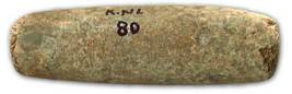 | Description / विवरण | Stone pestle made on sand stone pebble, well pecked and polished, circular in its cross section, slightly broken ends. |
