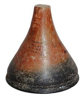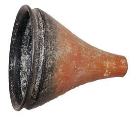 | Description / विवरण | Polished black and red ware, funnel shaped tulip lid cum bowl with flat top and wide mouth, flanged neck with out-turned flattened rim, Graffiti Brahmi letter Ma mark below the neck. |