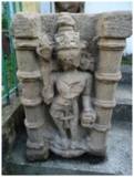 | Description / विवरण | Two armed image of unidentified in sand stone. Standing posture. A demon seen below lying down. |