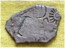 | Description / विवरण | The shape of the coin is irregular. This is an imperial type of punch marked coin. Obverse Sun, Elephant and an indistinct symbol. Reverse Blank. |