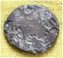 | Description / विवरण | The shape of the coin is oval. This is an imperial type of punch marked coin. Obverse Sun, six armed symbol, Animal and some indistinct symbols. Reverse Crescent. |