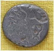 | Description / विवरण | The shape of the coin is round. Obverse Six armed, mountain, animal and other symbols are indistinct. Reverse Blank. |