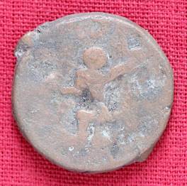 | Description / विवरण | The shape of the coin is circular. Obverse Kushana type king, standing with his right hand curved upward and his left hand extented. Reverse Probably the figure of MAO or Moon-God with his right hand curved upwards and the crescent above the left shoulder. |