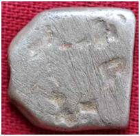 | Description / विवरण | The coin is an imperial type of Punch-marked coin. The coin is irregular in shape. Obverse Symbols are defaced due to abrasion. Reverse Symbols are defaced due to abrasion. |