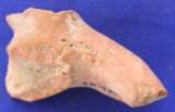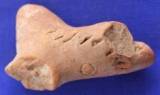 Body of a terracotta animal figurine. Circular punches and vertical lines all over the body. All parts of the body are missing.