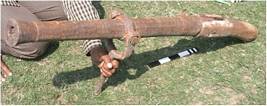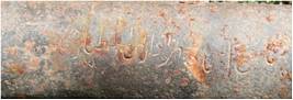 | Description / विवरण | This is a hand cannon cast in iron known as shaturnal . The barrels this gun is faceted and is octagonal in section. The cylinder of the gun appears almost parallel but it slightly tappers from towards muzzle with flaring out mouth. A set of astragals near mouth separates muzzle from chase and another set separates chase from breech. There are four inscriptions on the cannon, first on muzzle portion, second was near the trunnion, third and forth are on breech portion. The cascable is fixed to wooden butt with iron nails. The vent hole is seen on the right side of the breech with flash pan. |