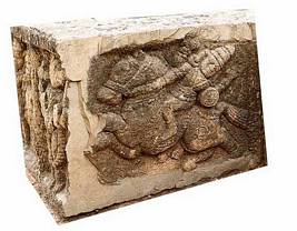 | Description / विवरण | A galloping horse to the left with a warrior seated on its back holding a shield and holding reins of the horse. Probably Kalki last incarnation of Vishnu. |