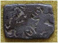 | Description / विवरण | The shape of the coin is rectangular. Obverse Sun, six armed wheel and some indistinct symbols. Reverse Triangle, dots and an indistinct symbol. |