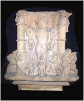 | Description / विवरण | Within the two pilasters there stands a figure of Surya with two hands holding lotus. Back to the head it contains halo. Near the feet Danda pingala are depicted and before the feet God there stands Female figure may be chhaya. To right and left male and female devotees are shown. Outside the Pilasters on each side makaras have been depicted. |