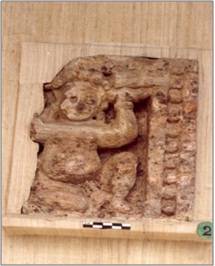 | Description / विवरण | The sculptural fragment within beaded borders on the right side depicts an antalanfid gana figurine. |