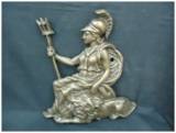 | Description / विवरण | The deity is shown wearing a coronet on his head and is sitting in a relaxing posture near his vehicle, a lion. The lion and the deity are in profile and they are looking to the left. The deity, who is depicted as two armed, is holding a trident with the right hand. Certainly, it does not represent any Indian divinity. It may be identified with some Roman or Greek divinity. The sculpture is a metal cast and is not solid. |