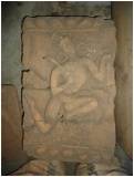 | Description / विवरण | Depicting figure of a flying Vidyadhara ,holding probably a khadga or a short danda, with the right hand. The left hand is seen carrying an object looking like a small full bloomed lotus without stalk. The kundala and kirita mukuta worn by the vidyadhara are clearly seen. The lower drapery, which is beautifully designed, is nicely depicted. The upper and lower borders of the plaque bear a design of a lotus petal. |