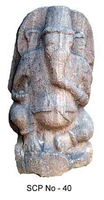 | Description / विवरण | Ganesa seated in ardha paryankasana with the right leg lifted up with the foot resting on the pitha, while the left is bent inwards and the sole open to the right. The head gear is composed of a kirita makuta i.e. a long conical cap with a head band on the fore head. The ears are broad and look fan like. The trunk is long and turned towards right and touches the modaka sweet meat . He is represented with two hands the right holding some indeterminate object, while in the left is the sweetmeat modaka . It is devoid of any ornaments excepting for a naga udarabandha. yagnopavita is absent. Other ornaments include armlets. The face is oval in shape and rough in appearance. Seems to belong to the Chalukya period. |
