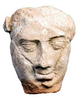 | Description / विवरण | Male head with thick beard and mustache, thick lips, long nose, eyes closed. Hair do is like a bun in the hind portion of the head. It shows iconographical features of Amaravati School of Art. |