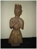 | Description / विवरण | Garuda, the vehicle of lord Visnu. Here, Garuda is depicted in the usual style i.e., kneeling with anjalihasta mudra out of reverence to his lord. The figure of which is, however, is not depicted along with him. This mythical figure is always depicted in hybrid form. Here also depicted the same style. However, the wings are not seen. The piece of wooden sculpture must have been painted, for, the trace of yellow color can be noticed on the eyes. The right ear of the figure is broken. |