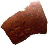 | Description / विवरण | Broken red ware sherd with incised symbol of trident triratna symbol. Of medium fabric, it is treated with red slip. Symbol is partly broken. |