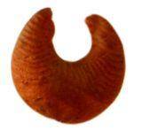 | Description / विवरण | Mullet having crescent shaped body having raised incurved ends. Each end has a small perforation. Multiple grooves on the body are prominently seen with slightly broken ends. |