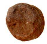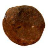 | Description / विवरण | Circular ear spool made of clay with rough surface and uneven edges. |