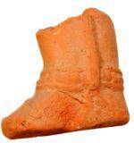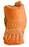 | Description / विवरण | Right leg of human figure. The foot partly retains ankle portion. It wears beaded anklet. Five toe fingers are delinated very clearly. |