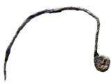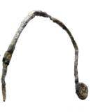 | Description / विवरण | A semi circular iron hanger handle made of thick rod. It has crescent shaped body with looped ends. One end is broken. |