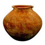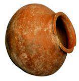 | Description / विवरण | A storage redware pot with round base, globular body convex neck with splayed externally thick flat rim. Of medium fabric it is treated with slip. |