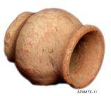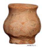 | Description / विवरण | Miniature vase of a pale red ware with wash contains micaceous contents, elevated flat base, concave bulged body, convex neck with everted thick blunt rim slightly damaged body. |
