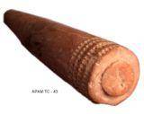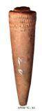 | Description / विवरण | It is a well baked, very hard core looks like a carrot in shape treated with fine red slip, having conical bottom end and flat top with small circular projection. Below the top end shows rows of pitted lines without any trace of white or other colour pigment. Probably the cone is used for boring or fixed to a wooden post to use as a piercing artifact. It can also be used as leg to a pot. |