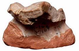 | Description / विवरण | A broken terracotta figurine of Lajja-Gauri. She shows legs apart, projecting private part Pudenta upper part and legs, hands broken. She wears ornamental mekhala. |