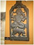 | Description / विवरण | It is figure of a Ganesha seating on his bahana, cut in round on a piece of wood. The frame decorated on the upper like prabhavali. It is a beautiful piece of wood. |