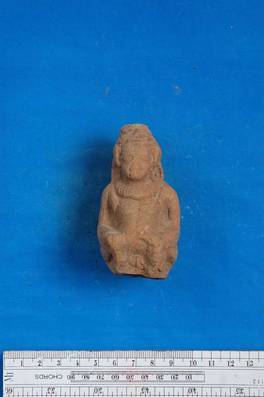| Description / विवरण | Seated male figure wearing an open waist coat and a necklace composed of super imposed rosettes. Legs damaged. |