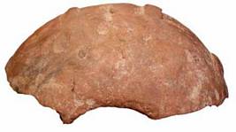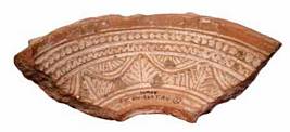 | Description / विवरण | A terracotta mould piece of a round plate with leaf design near the centre, followed by a wavy and circular lines, beaded design at the periphery. Plain back side. |