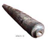 | Description / विवरण | Cone with black patch on its body. It has flat top with round projection having a hole. It has sharp conical bottom end. |