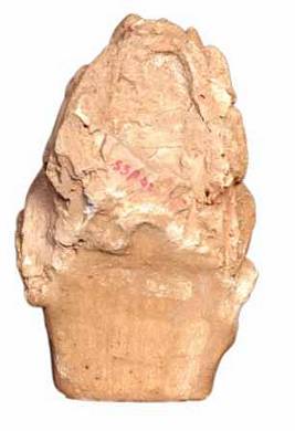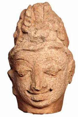 | Description / विवरण | Broken head of human figurine with jata makuta with hair done into coils. A patta is seen around the fore head. Sharp, elongated and acqualine nose, smiling oval face, drooping eyes, thick lower lip. Right ear lobe is seen prominently. |