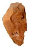 | Description / विवरण | Bifacial hand axe made on thick flake. It has partly flaked buttend and slightly thinner functional edge created by very little work. The cutting edge is produced by the intersection of a flake with the main flake surface. It has oblique cutting edge with partly serrated surface. It has thick mid portion. Line of profile is roughly wavey. |