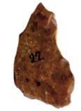 | Description / विवरण | Double sided scraper made on a thick flake, broken at the distal end upper surface shows irregular ridge with shallow flake scars. Under surface with a bulb of percussion with bulbar scar and faceted striking platform. Both the long lateral margins show steep retouch to serve as scraping edges. |