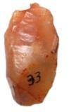 | Description / विवरण | Side scraper made on a flake. Upper surface shows shallow flake scars with a patch of cortex, under surface with prominent bulb and bulbar scars and prepared striking platform. Steep flaking seen all along the lateral sides to serve scraping edge. |