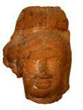 | Description / विवरण | A head of terracotta figurine with combed hair and tied on the top of the head like a bun. Head band with a crust like jewel and makarika ornament. It shows oval face, long pointed broad nose, thick lower lip, lenticular eyes not clear , pointed chin, fleshy cheeks, combed hair covers the earlobes. |