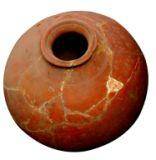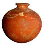 | Description / विवरण | A redware pot with round base, globular body slightly convex neck, with everted thick blunt rim. |
