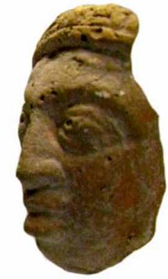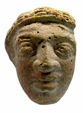 | Description / विवरण | Head of a terracotta human with long, broad nose, thick lower lip, slightly open mouth and round eyes with pupils. He wears a decorated conical skull cap with a thick head band. Eye balls and ears lobes mutilated. |