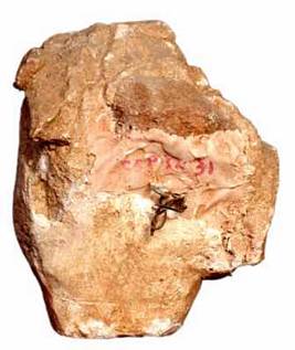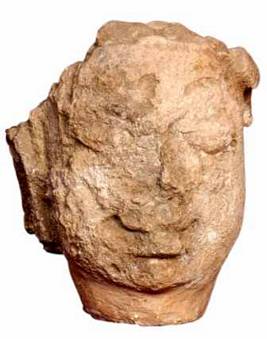 | Description / विवरण | A worn out head of a male, right part damaged. Sharp nose damaged , thick lips, lower side of chin is prominent. Only left eye and ear lobe are seen. |
