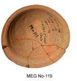 | Description / विवरण | Miniature red ware lid hat shaped lid having hemispherical body and conical blunt top with broad base and thick bottom rim. |