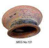 | Description / विवरण | Red ware medium size pot with sagger base and carinated waist, sloppy shoulders, convex neck, splayed out externally thickened flat cut rim. A prominent rope design just above the carinated waist. |