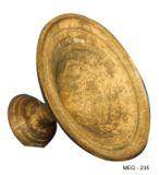 | Description / विवरण | Polished black ware stand with broad base having deep groove and tappered body, small bowl shaped body on top with a central hole extended from top to bottom. Three deep grooves below the neck and two grooves inside the rim. |