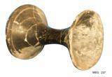 | Description / विवरण | Highly polished black ware stand with broad base and deep groove, elongated body slightly convex in shape, tapering neck, externally splayed out thick top rim. |