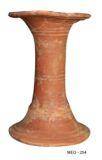 | Description / विवरण | Highly polished red ware long stand with thick, slightly extended grooved base, elongated convex body, splayed out externally thick grooved top rim. Two spacious deep grooves above the base. Prominent grooves at the middle. |