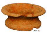 | Description / विवरण | Small red ware polished stand with extended bottom and a groove. Convex neck, splayed out externally flat thick top rim. Of fine fabric it is treated with slip. Broken rims on either side. |