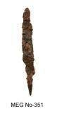| Description / विवरण | Leaf shaped knife with sharp blade edges, blunt pointed top and prominent thick tang. |