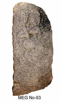| Description / विवरण | A rectangular slab is depicted with a Nagini with three hoods. She is holding a lotus bud in right hand. Her left hand also raised upward and holding unidentified object. She wears a hara and patrakundalas. |